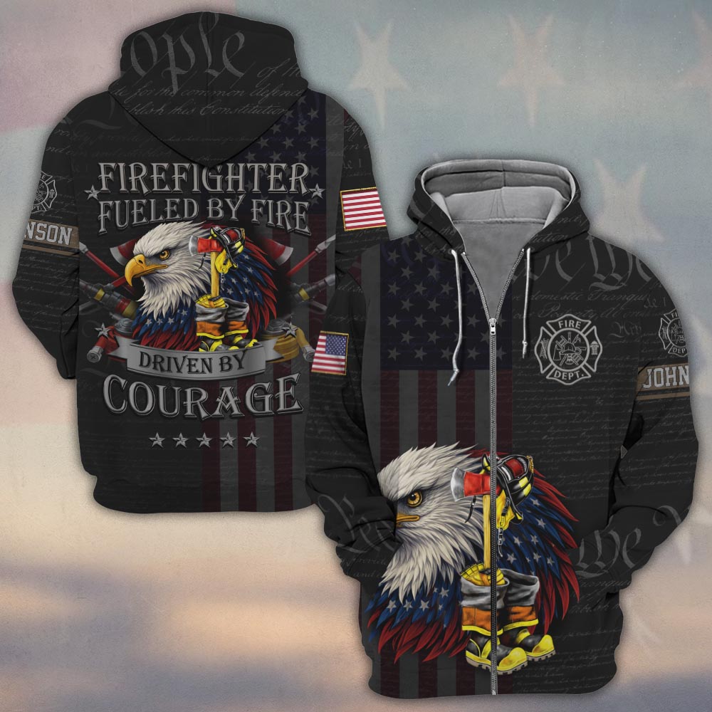 Custom Name & Department Firefighter Fueled by Fire – Driven by Courage #DQH0506 – Zip Hoodie