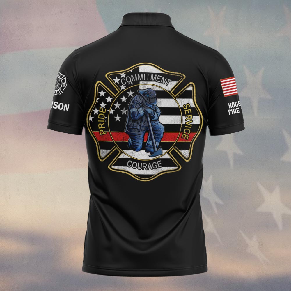 Custom Name & Department Firefighter Pride Commitment Service Courage #DQH0544 – Polo