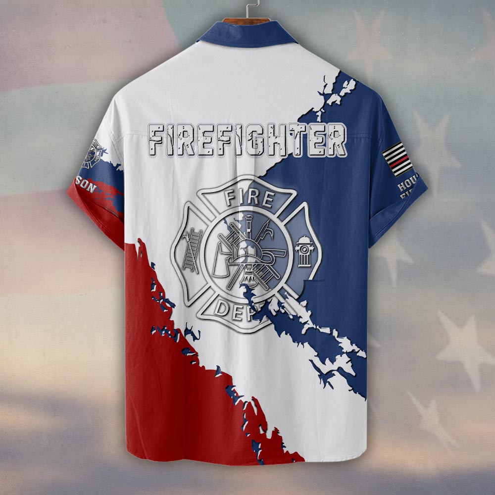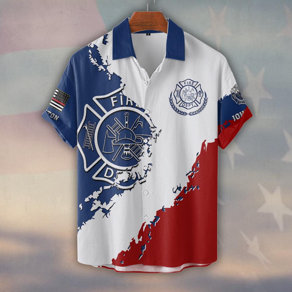 Custom Name & Department Firefighter Stars & Stripes Honor #DQH0513 – Short Sleeve Button Shirt