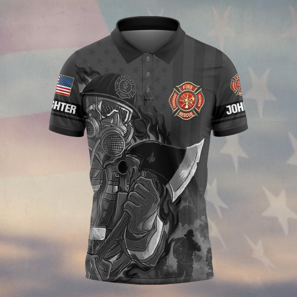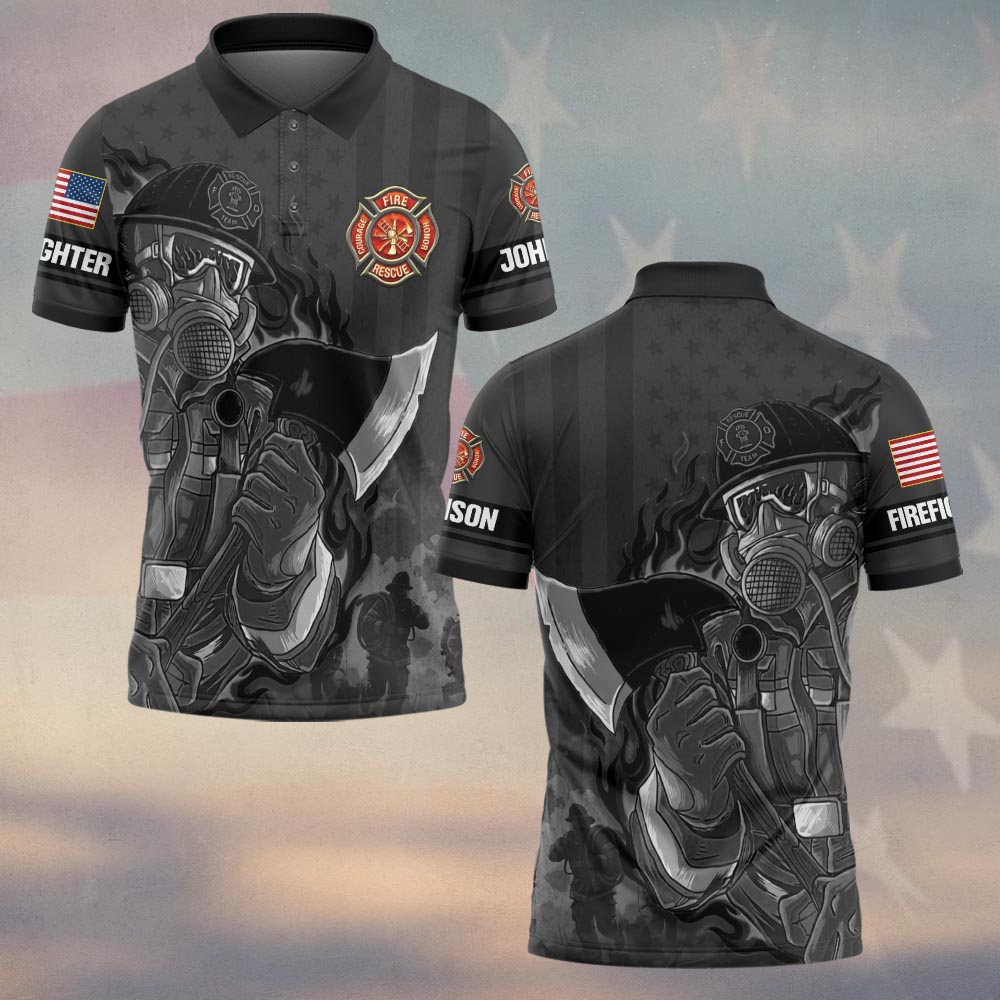 Custom Name & Department Firefighters Through Smoke & Steel #DQH0507 – Polo
