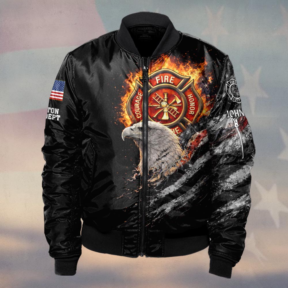 Custom Name & Department Firehouse Guardian Eagle Firefighters #DQH0510 – Bomber Jacket