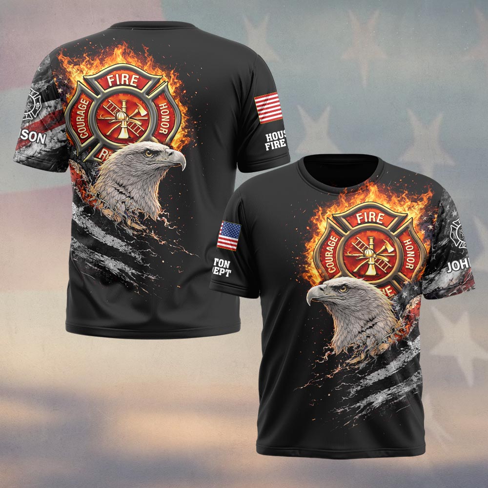 Custom Name & Department Firehouse Guardian Eagle Firefighters #DQH0510 – T-shirt