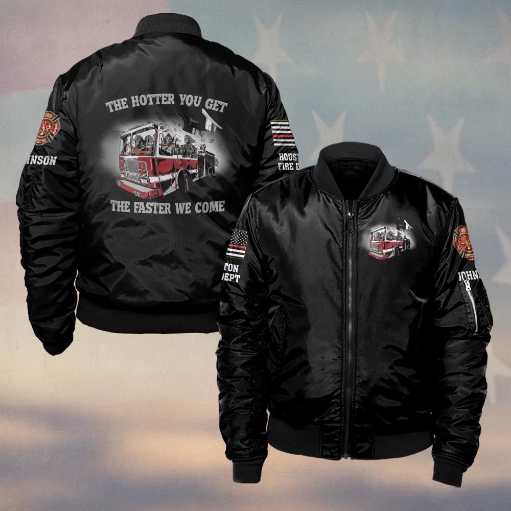 Custom Name & Department Firehouse Squad The Hotter You Get The Faster We Come Firefighter #DQH0509 – Bomber Jacket
