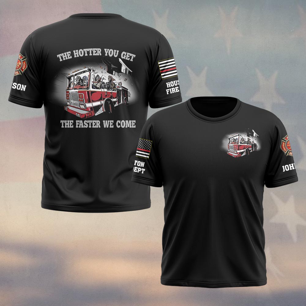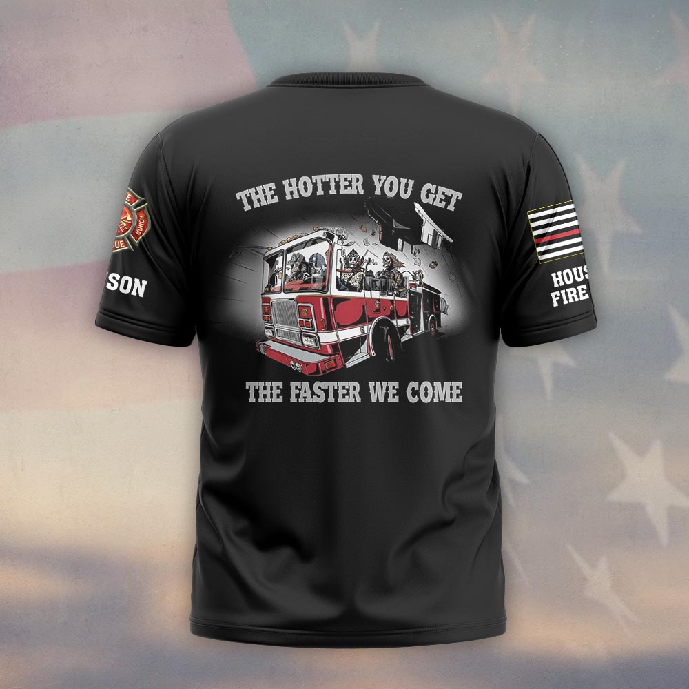 Custom Name & Department Firehouse Squad The Hotter You Get The Faster We Come Firefighter #DQH0509 – T-shirt