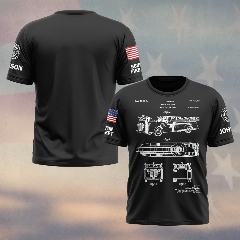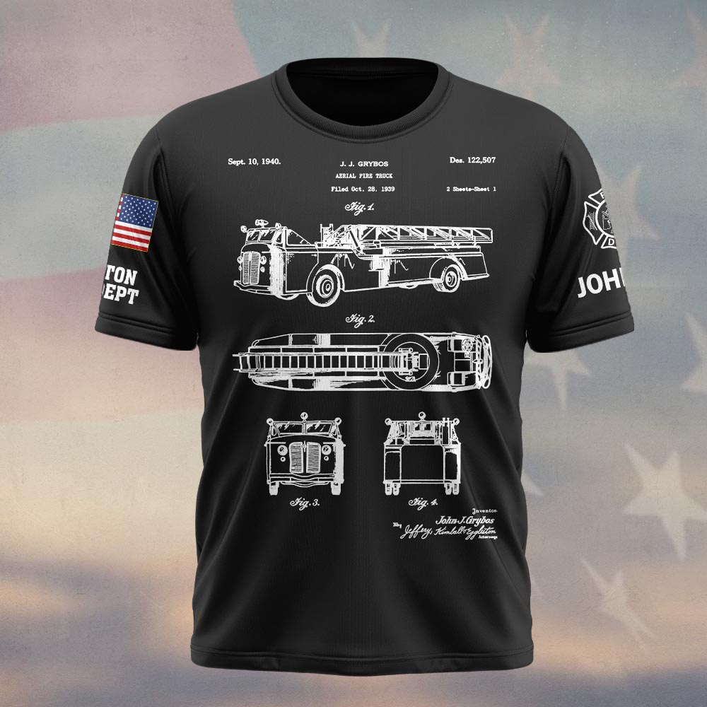 Custom Name & Department Firetruck Blueprint Firefighter #DQH0650 – T-shirt
