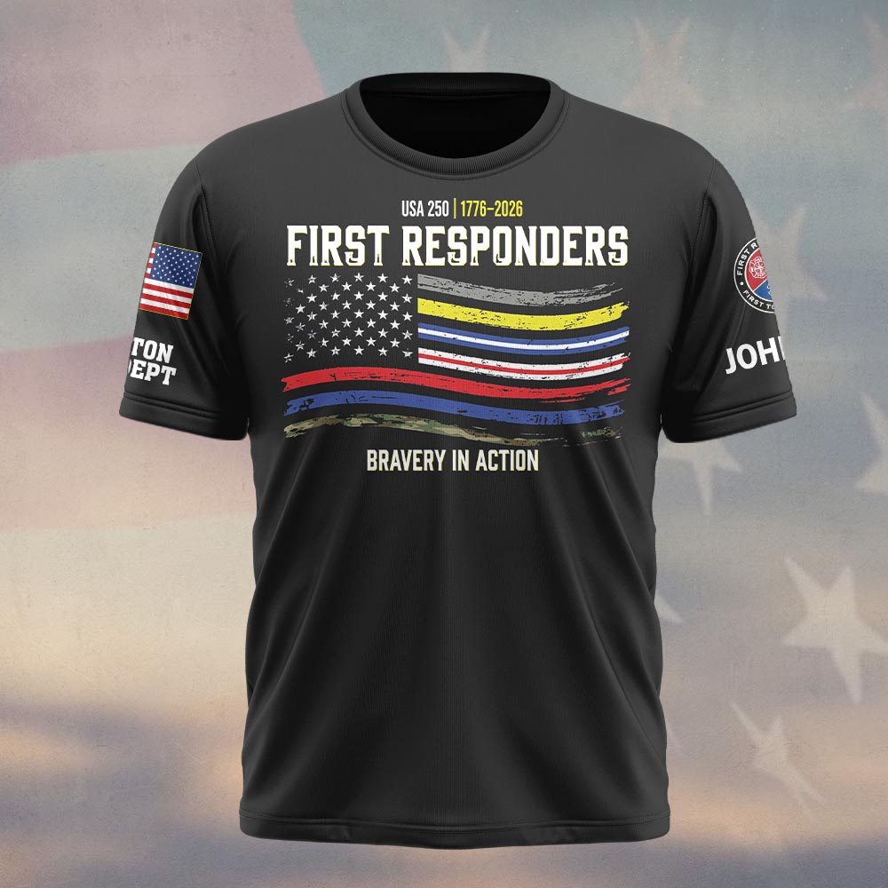 Custom Name & Department First Responder Bravery Flag #DQH0589 – T-shirt