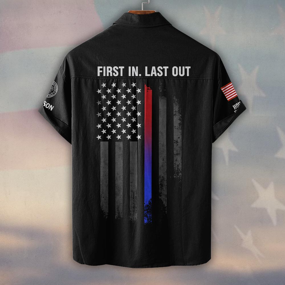 Custom Name & Department First Responder Family United By Duty #DQH0483 – Short Sleeve Button Shirt