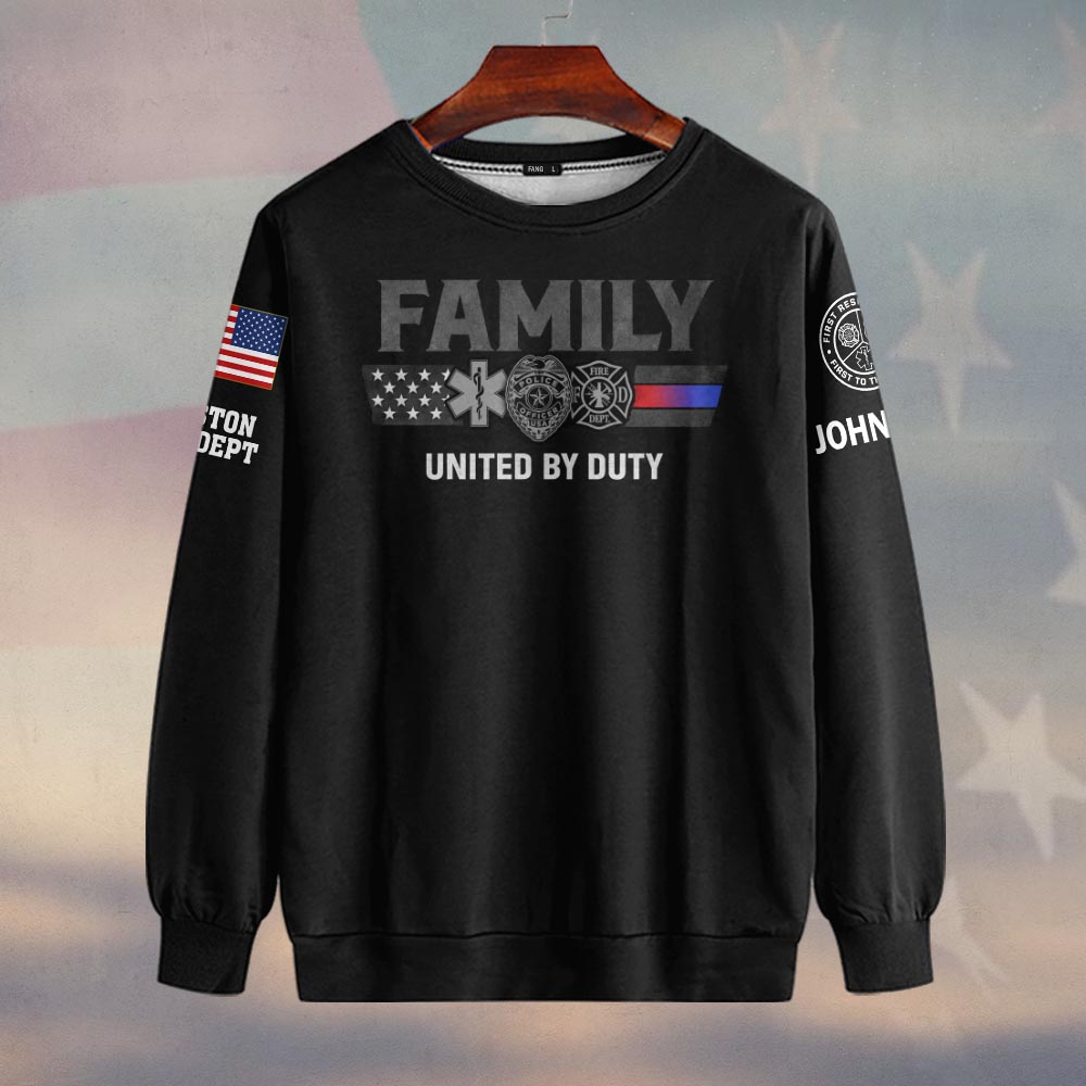 Custom Name & Department First Responder Family United By Duty #DQH0483 – Sweatshirt