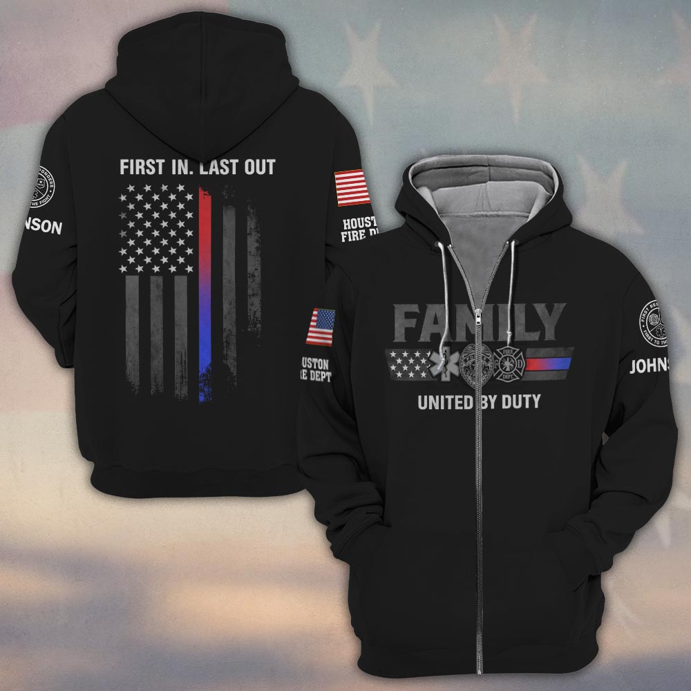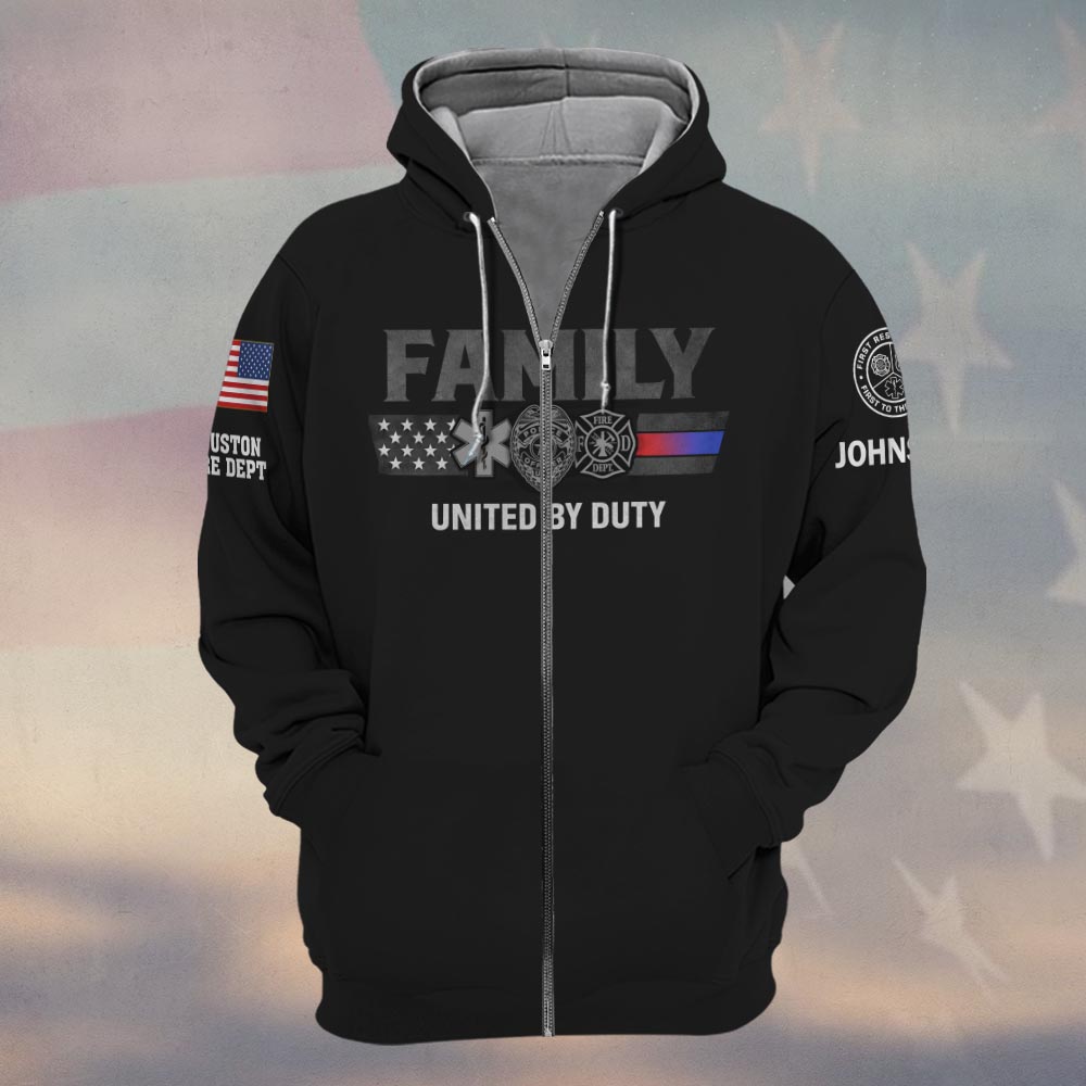 Custom Name & Department First Responder Family United By Duty #DQH0483 – Zip Hoodie