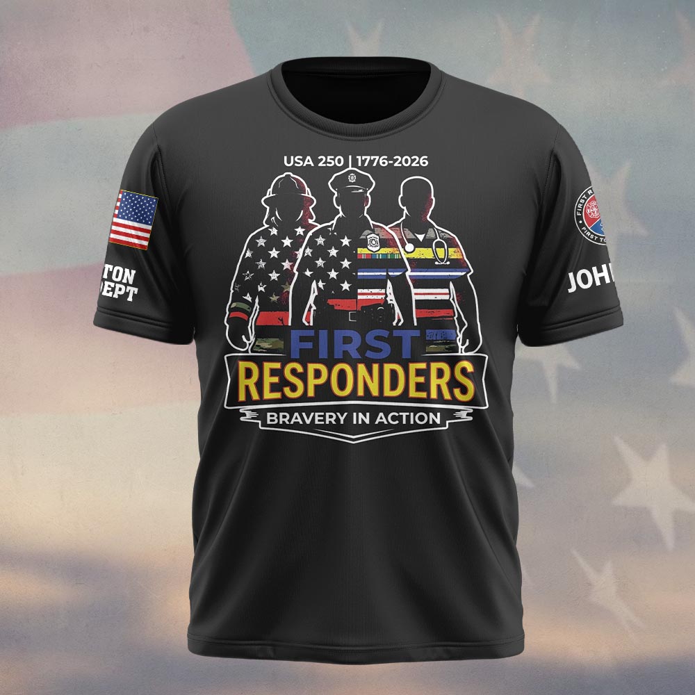 Custom Name & Department First Responder Stand Together USA 250 #DQH0586 – T-shirt