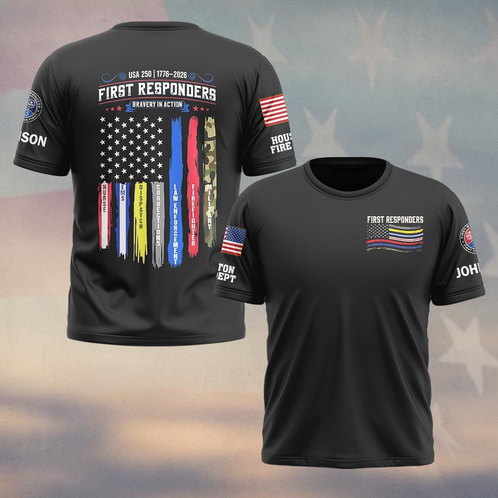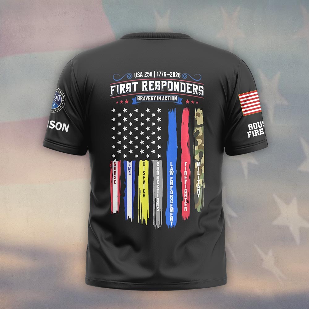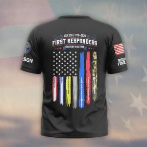 Custom Name & Department First Responders Bravery In Action #DQH0637 – T-shirt