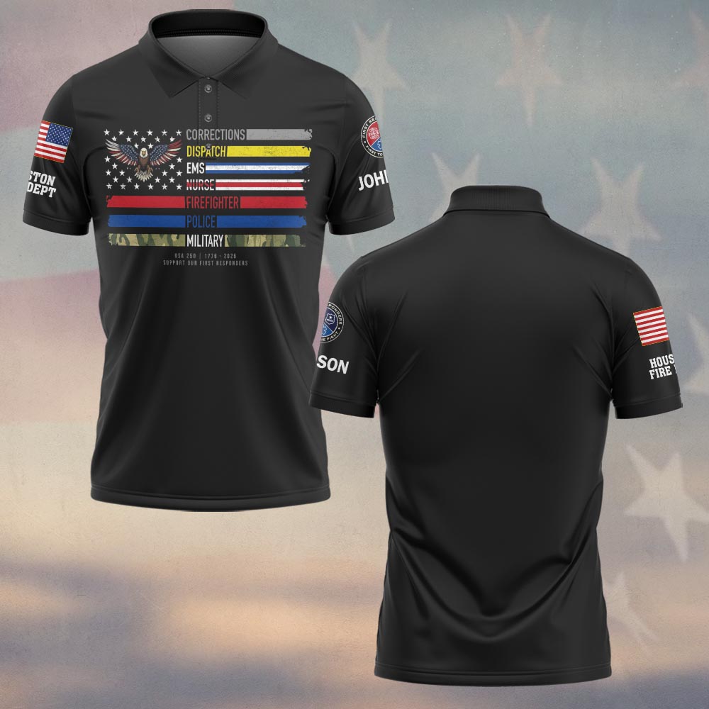 Be the first to review “Custom Name & Department First Responders Flag America Eagle Support Our Hometown Heroes #DQH0642 – Polo”