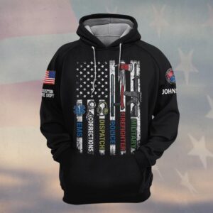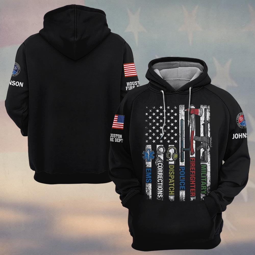 Custom Name & Department First Responders Flag And Gear First In Last Out #DQH0639 – Hoodie