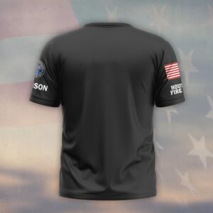 Custom Name & Department First Responders Flag And Gear First In Last Out #DQH0639 – T-shirt