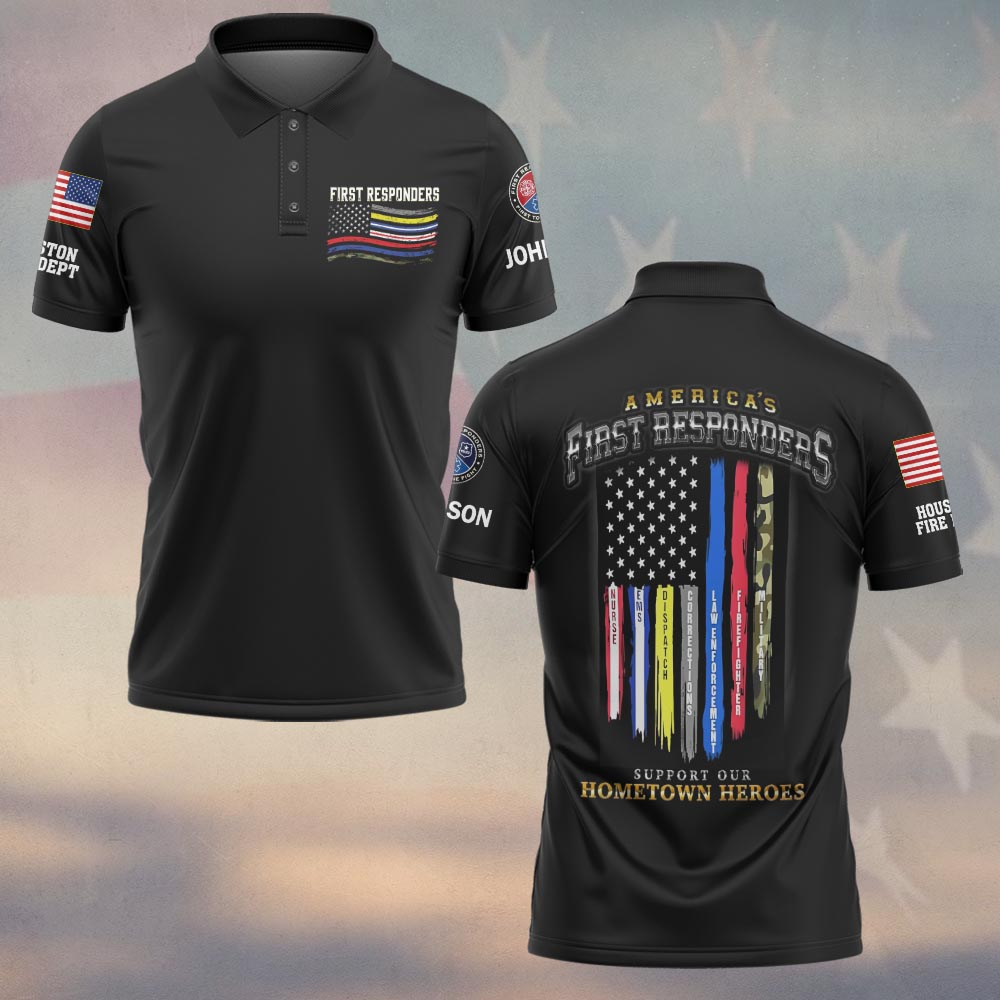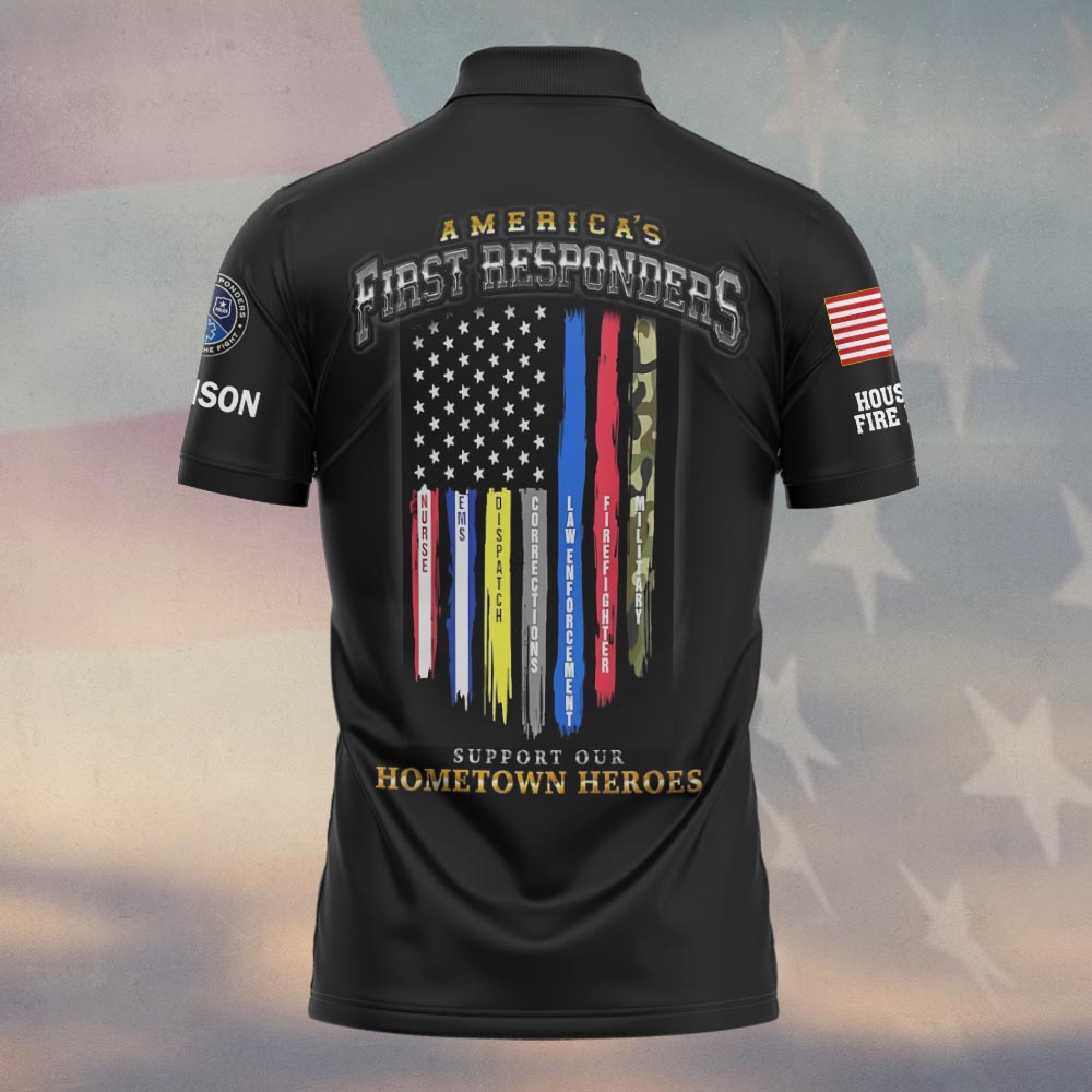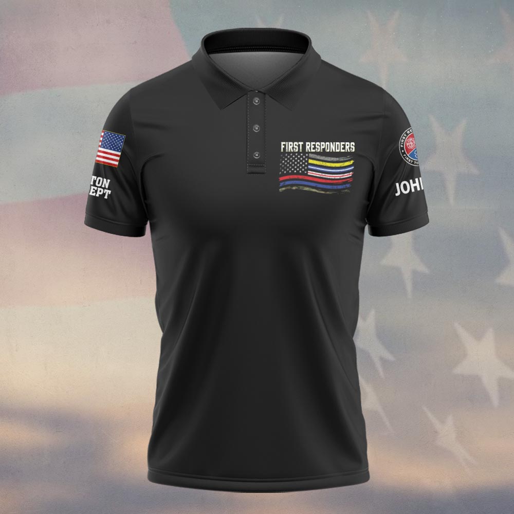 Custom Name & Department First Responders Flag Support Our Hometown Heroes #DQH0643 – Polo