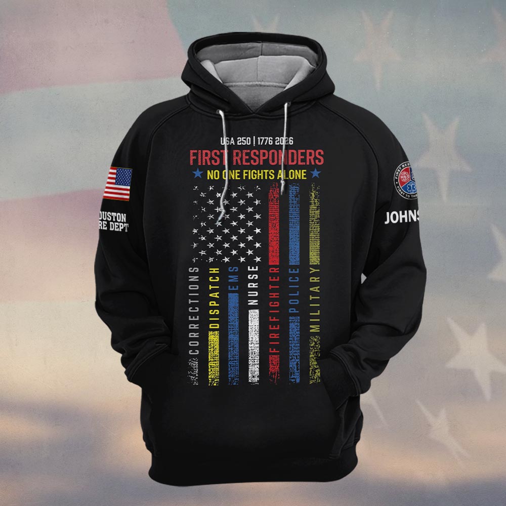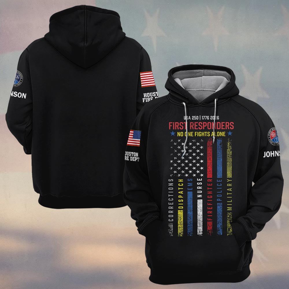 Custom Name & Department First Responders No One Fights Alone USA 250 #DQH0641 – Hoodie
