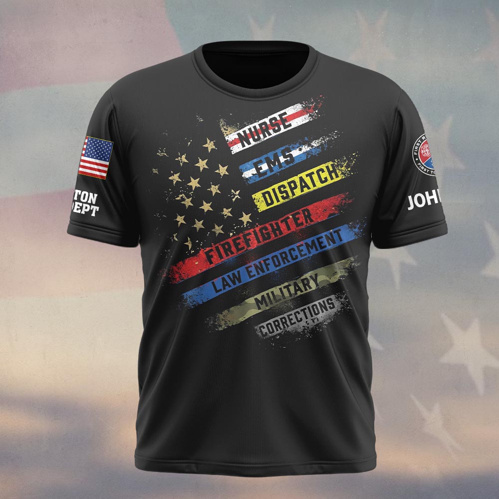 Custom Name & Department First Responders Pride In Every Role #DQH0638 – T-shirt