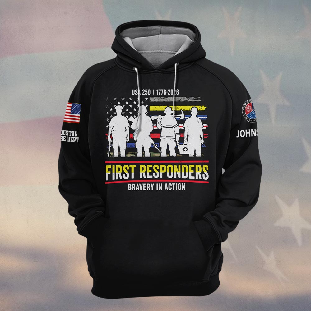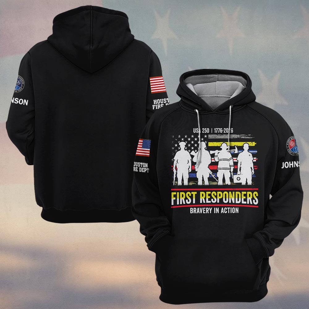 Custom Name & Department First Responders Stand Together USA 250 #DQH0591 – Hoodie