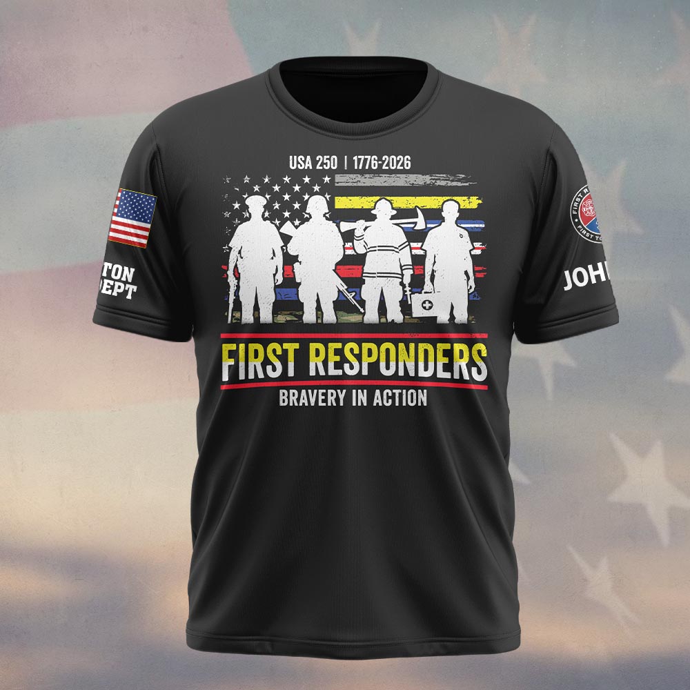 Be the first to review “Custom Name & Department First Responders Stand Together USA 250 #DQH0591 – T-shirt”