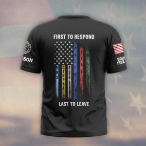 Custom Name & Department First To Respond Last To Leave First Responder Flag #DQH0482 – T-shirt
