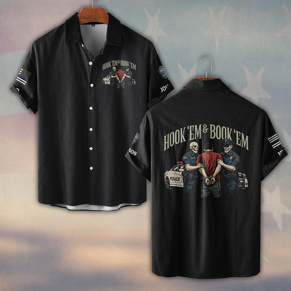 Custom Name & Department Hook ’Em & Book ’Em – Law Enforcement Edition #DQH0519 – Short Sleeve Button Shirt