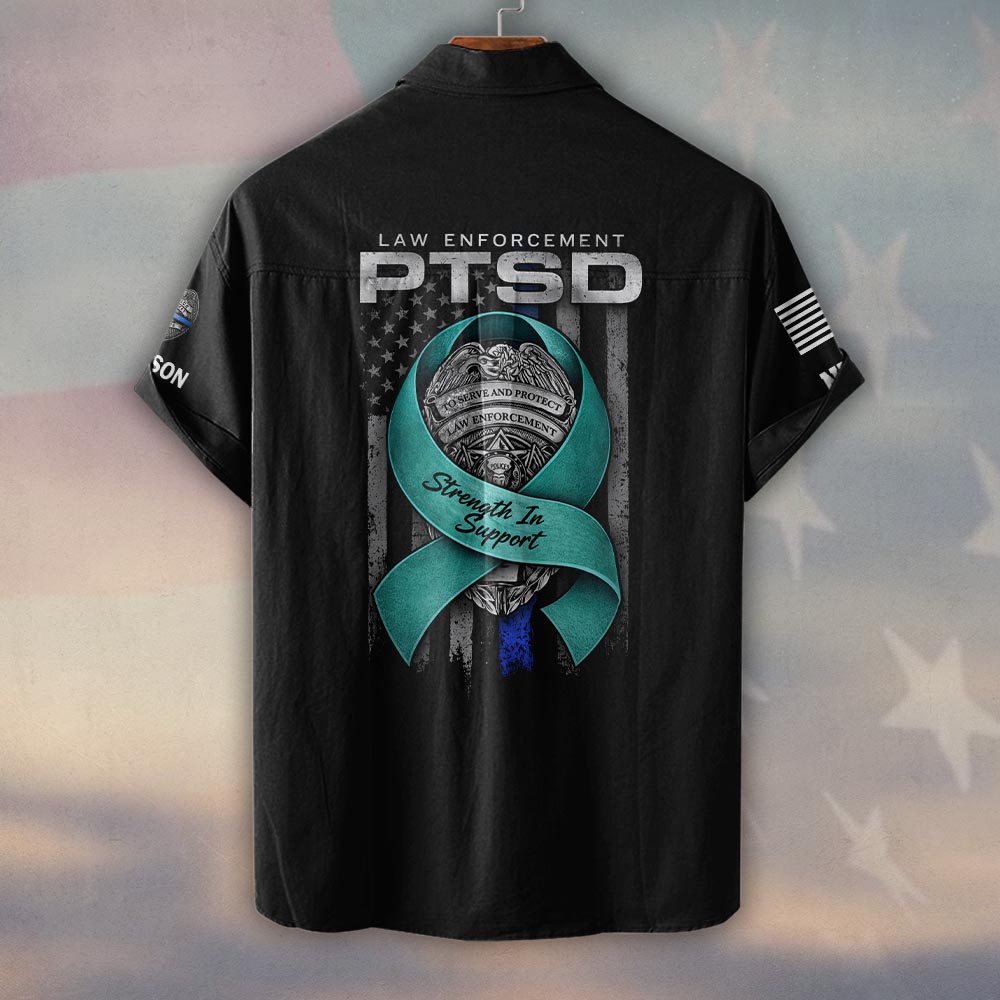 Custom Name & Department Law Enforcement PTSD Strength In Support #DQH0479 – Short Sleeve Button Shirt
