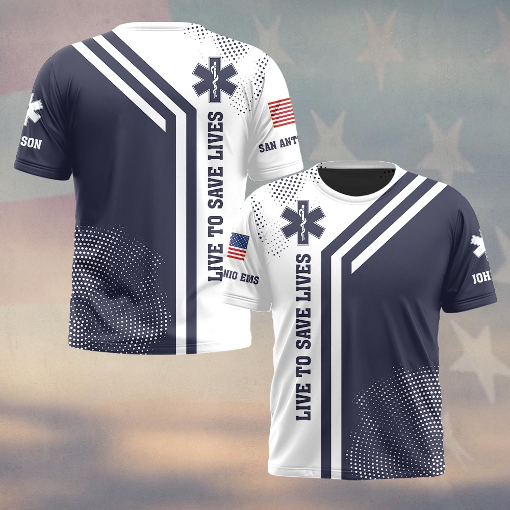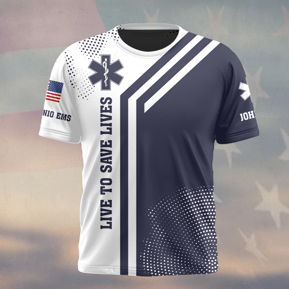 Custom Name & Department Live To Save Lives – EMS Duty Split Edition #DQH0565 – T-shirt