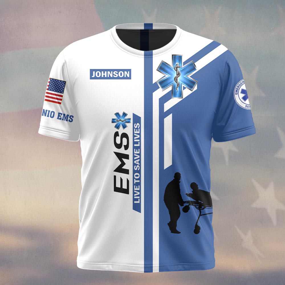 Custom Name & Department Live to Save Lives V2 EMS First Responder #DQH0536 – T-shirt