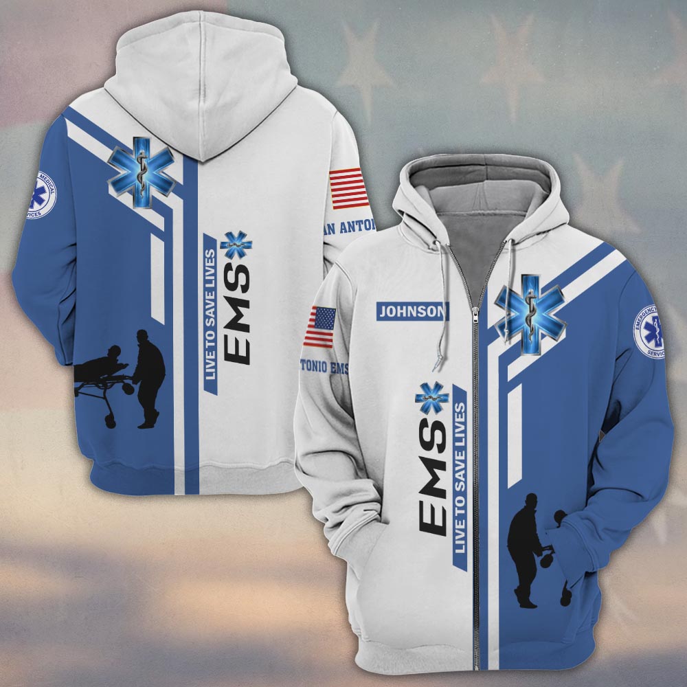 Custom Name & Department Live to Save Lives V2 EMS First Responder #DQH0536 – Zip Hoodie
