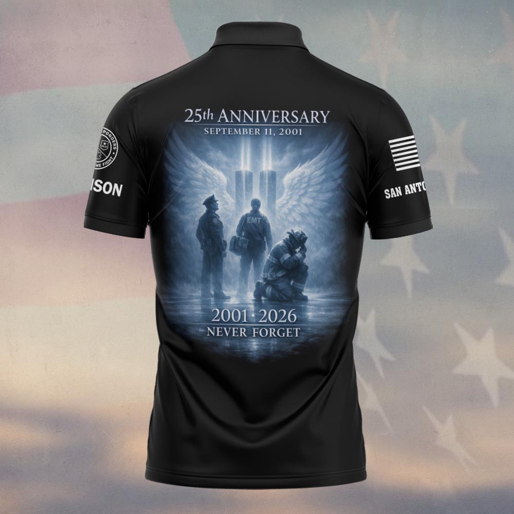 Custom Name & Department Never Forget 25th Anniversary 911 First Responders #DQH0609 – Polo