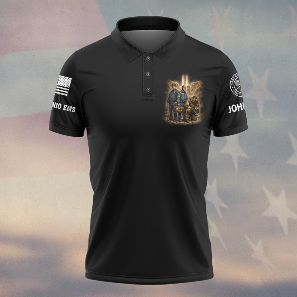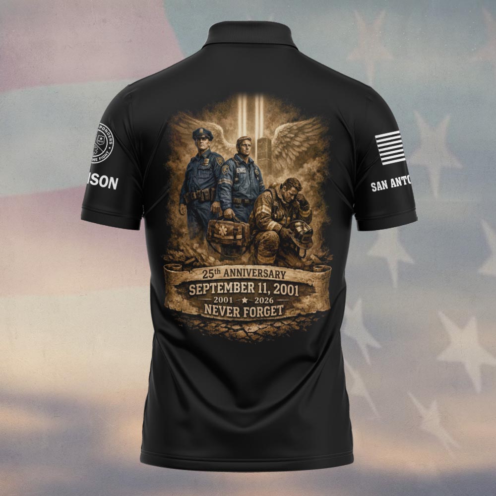 Custom Name & Department Never Forget 25th Anniversary 911 First Responders V2 #DQH0610 – Polo