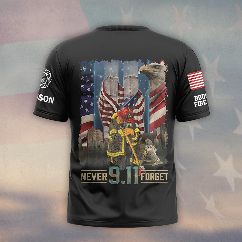 Custom Name & Department Never Forget 911 Twin Towers American Eagle #DQH0570 – T-shirt