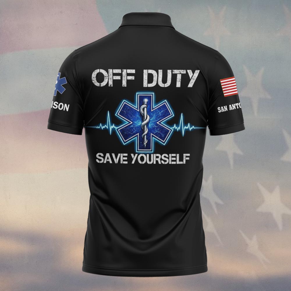 Custom Name & Department Off Duty Save Yourself EMS First Responders #DQH0528 – Polo