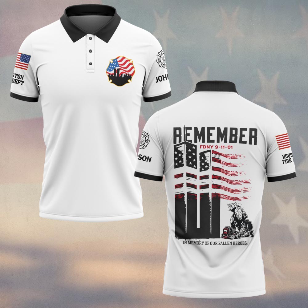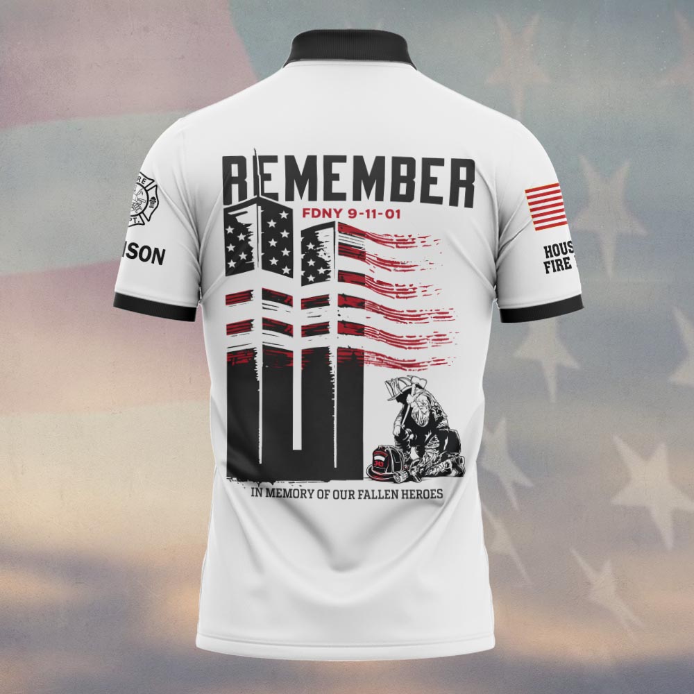 Custom Name & Department Remember 911 In Memory Of Our Fallen Heroes Firefighter #DQH0563 – Polo