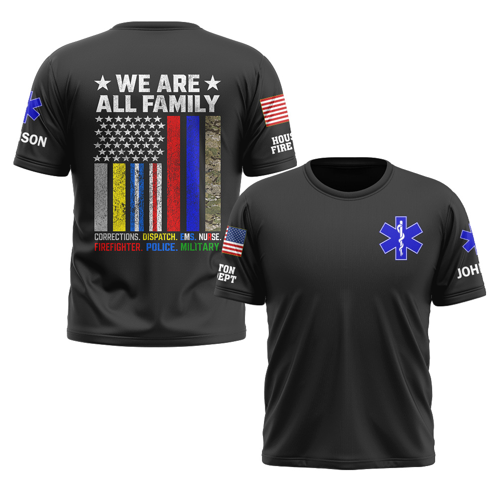 Custom Name & Department & Role We Are All Family America First Responder #DQH0525 – T-shirt