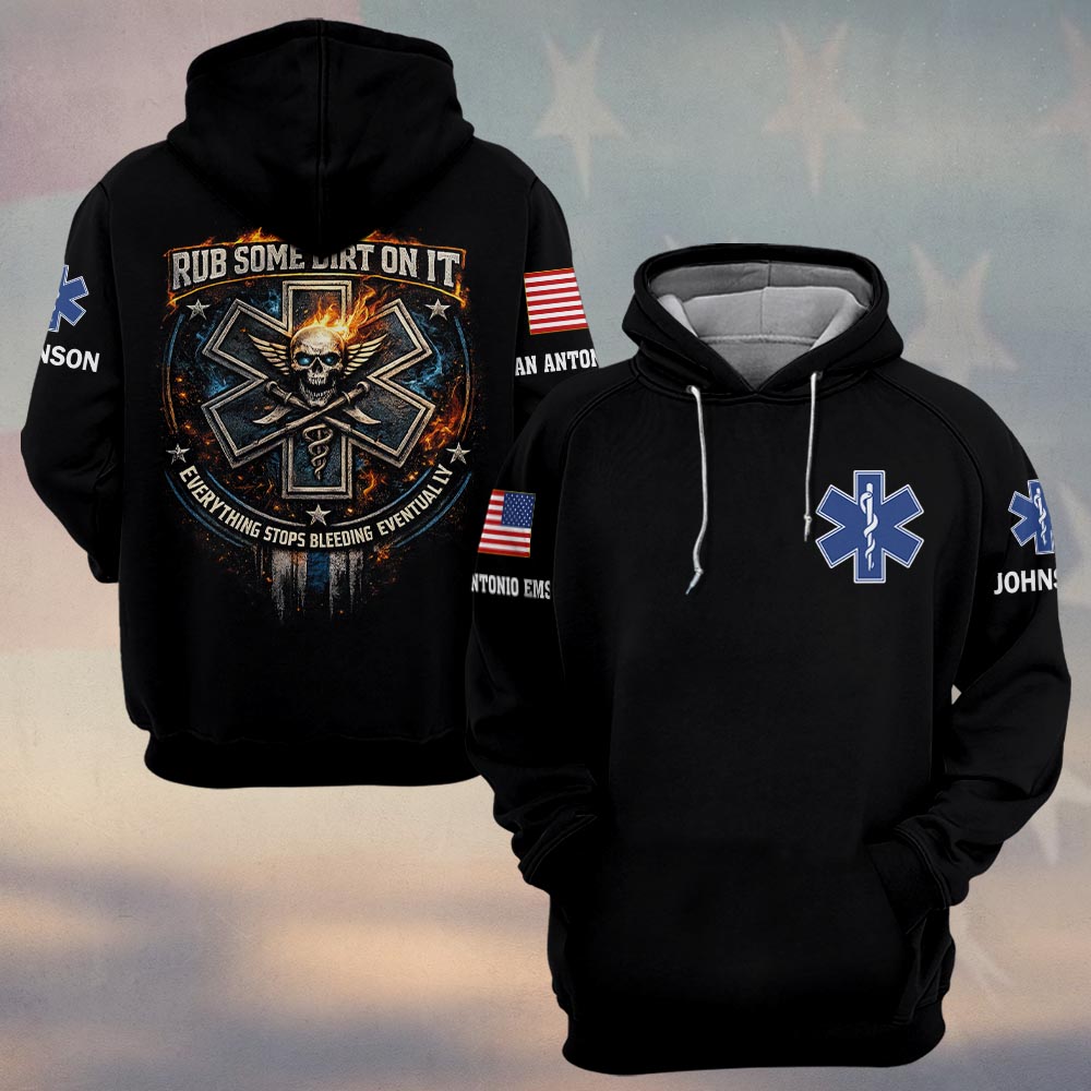Custom Name & Department Rub Some Dirt On It Everything Stops Bleeding EMS First Responders #DQH0527 – Hoodie