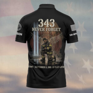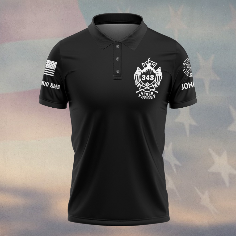 Custom Name & Department September 11 25th Anniversary FDNY 343 Never Forget Firefighters #DQH0662 – Polo