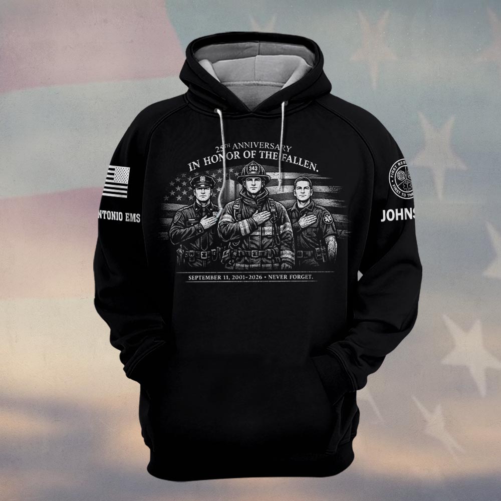 Custom Name & Department September 11 25th Anniversary First Responders Tribute #DQH0657 – Hoodie