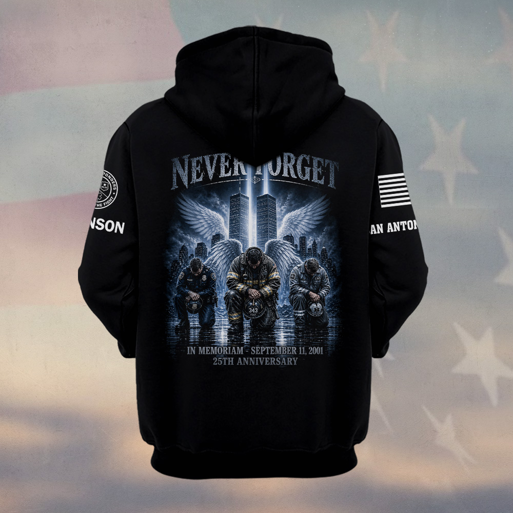 Custom Name & Department September 11 25th Anniversary In Memoriam Never Forget First Responders #DQH0665 – Hoodie
