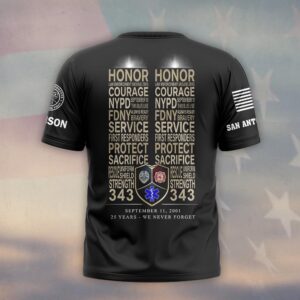 Be the first to review “Custom Name & Department September 11 25th Anniversary Twin Towers Text Of Honor #DQH0656 – T-shirt”