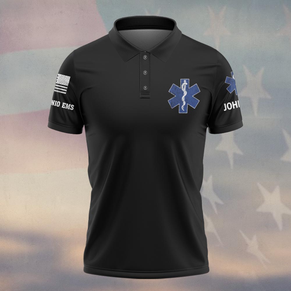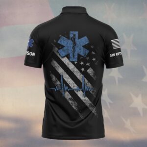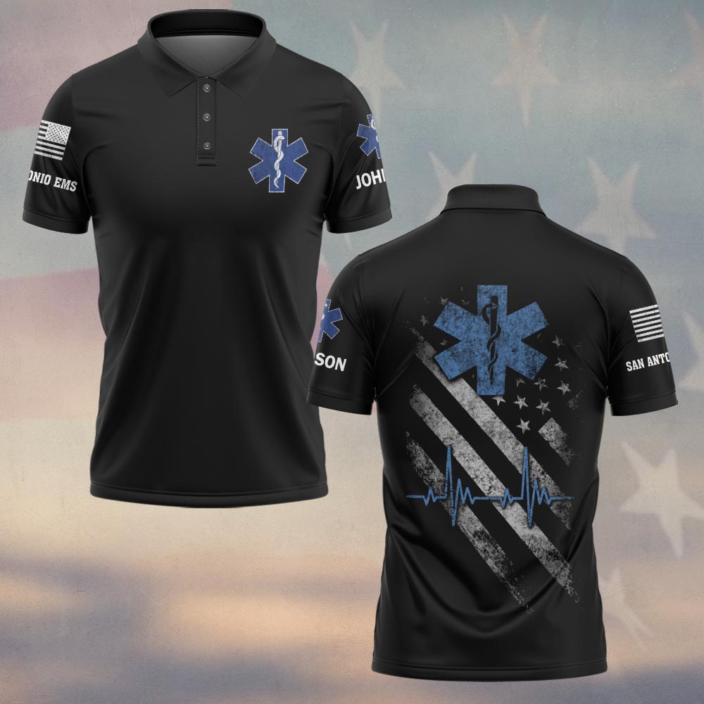 Custom Name & Department Star Of Life EMS Heartbeat Patriot First Responders #DQH0542 – Polo