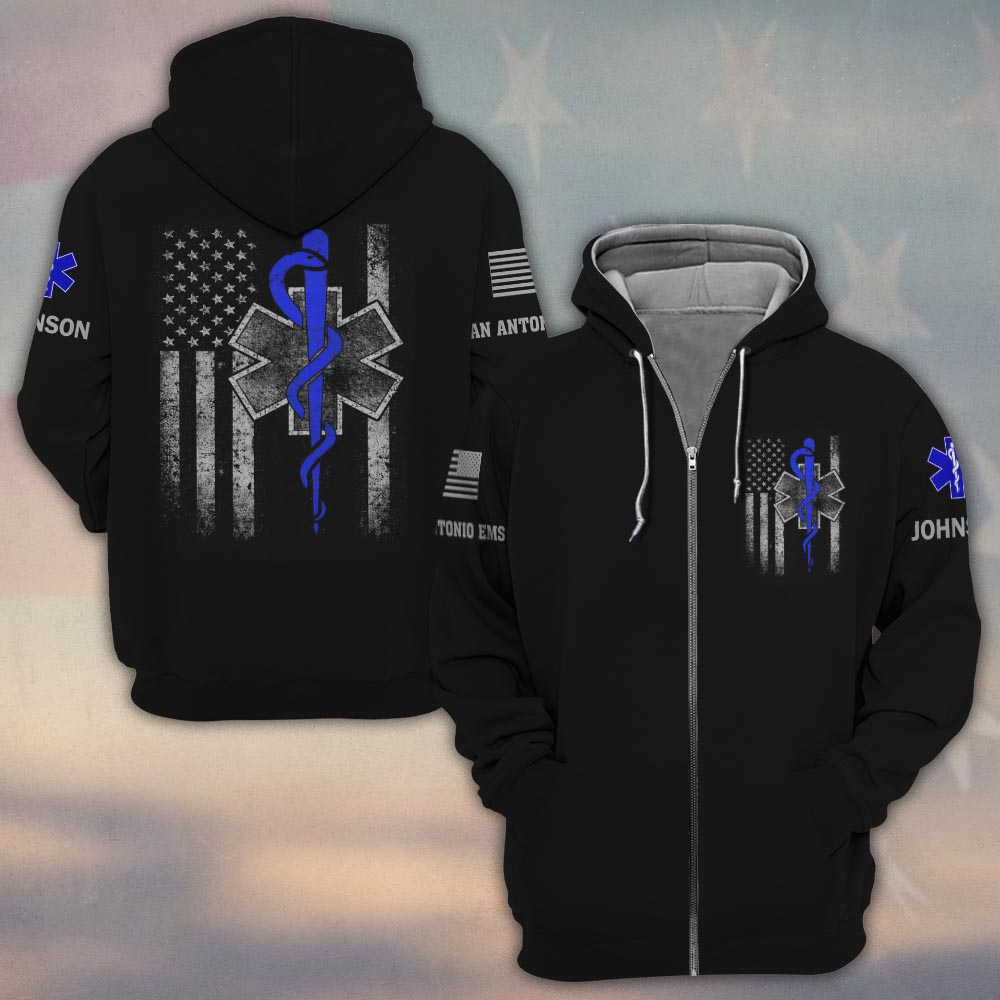 Custom Name & Department Star Of Life Medic Flag First Responders #DQH0449 – Zip Hoodie