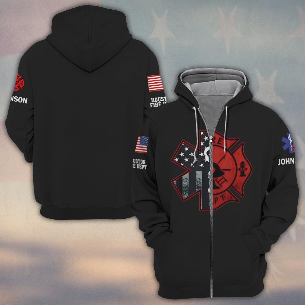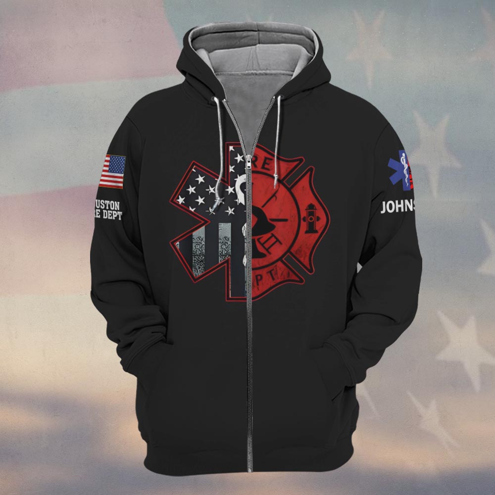 Custom Name & Department Stars & Shield First Responders #DQH0441 – Zip Hoodie