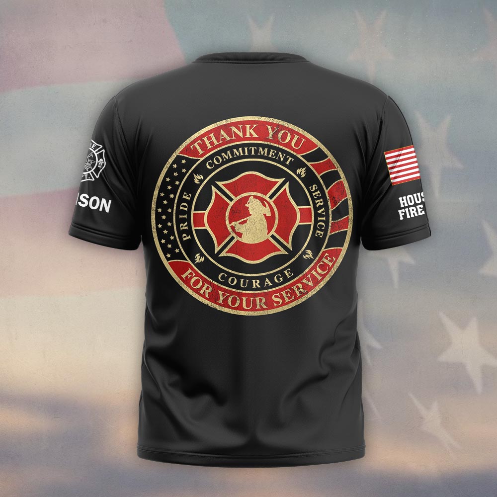 Custom Name & Department Thank You For Your Service Firefighter #DQH0547 – T-shirt