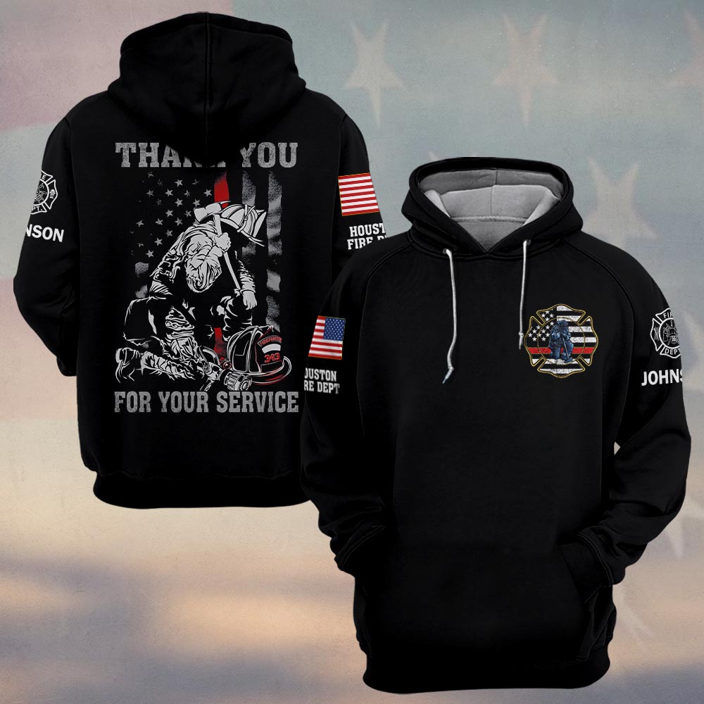 Custom Name & Department Thank You For Your Service Kneel Firefighter #DQH0548 – Hoodie