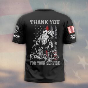 Custom Name & Department Thank You For Your Service Kneel Firefighter #DQH0548 – T-shirt