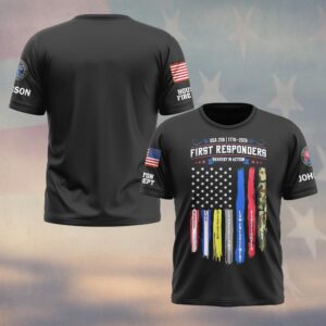 Be the first to review “Custom Name & Department USA 250 First Responders Bavery In Action #DQH0444 – T-shirt”