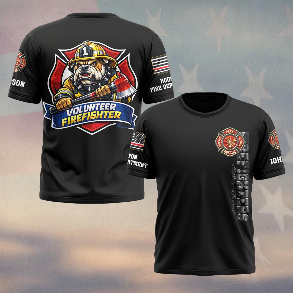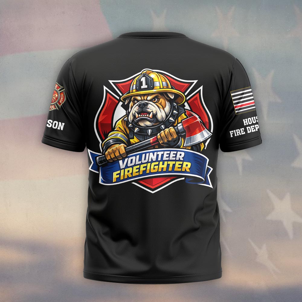 Custom Name & Department Volunteer Firefighter Bulldog v2 #DQH0997 – T-shirt