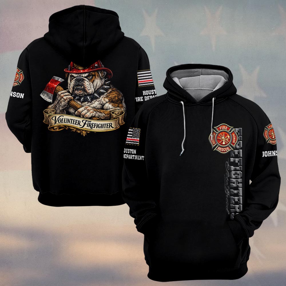 Custom Name & Department Volunteer Firefighter Bulldog v3 #DQH0998 – Hoodie
