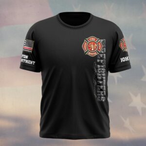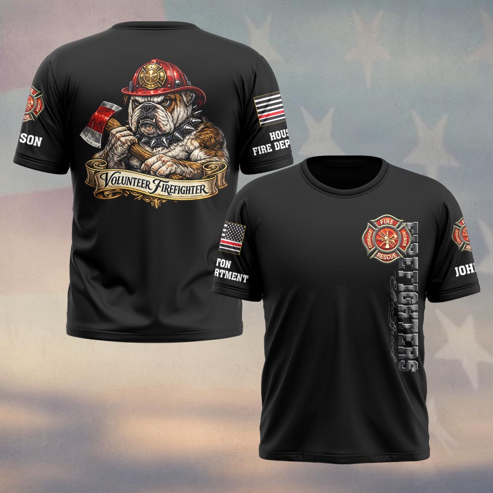 Custom Name & Department Volunteer Firefighter Bulldog v3 #DQH0998 – T-shirt